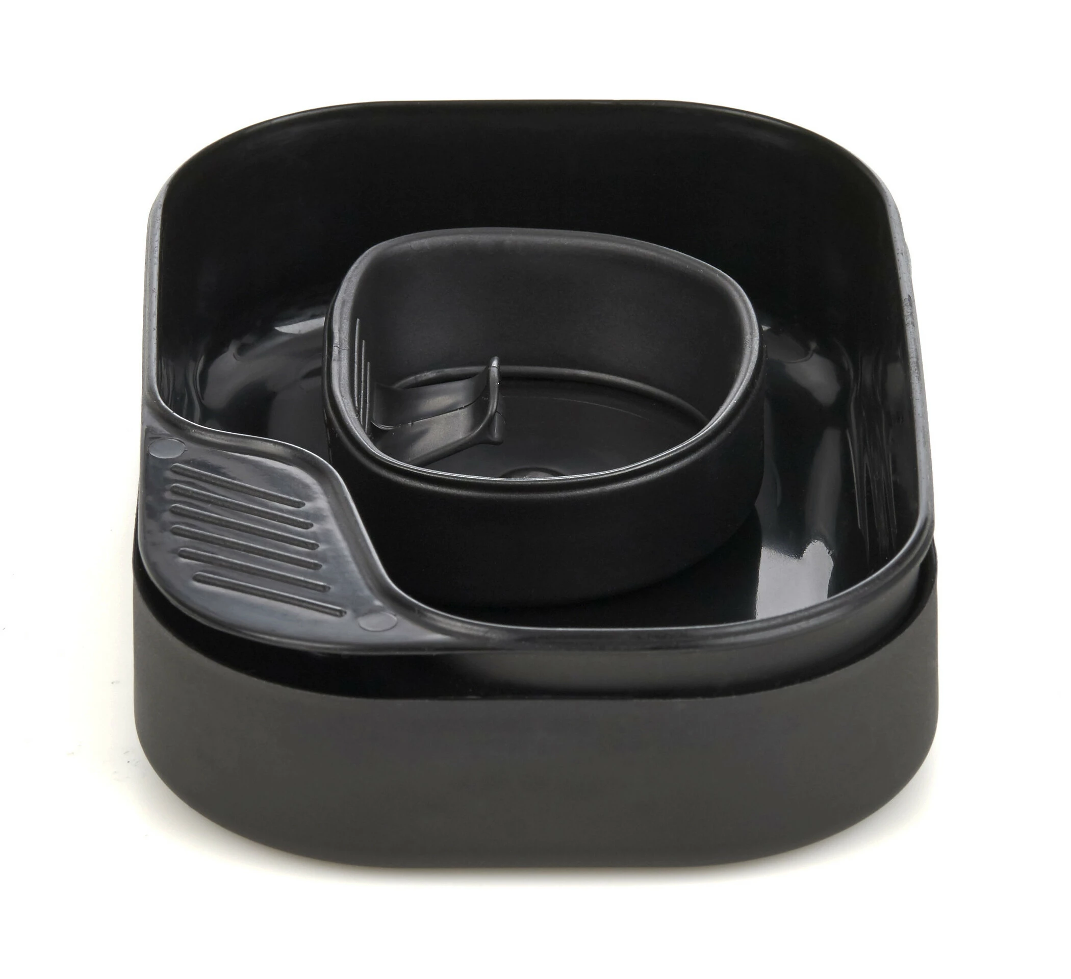 De basisversie van de Camp-A-Box past perfect als u alleen een paar boterhammen in de doos wilt doen en een beker wilt hebben om uit te drinken. Het bevat een bord met deksel en een opvouwbare beker.