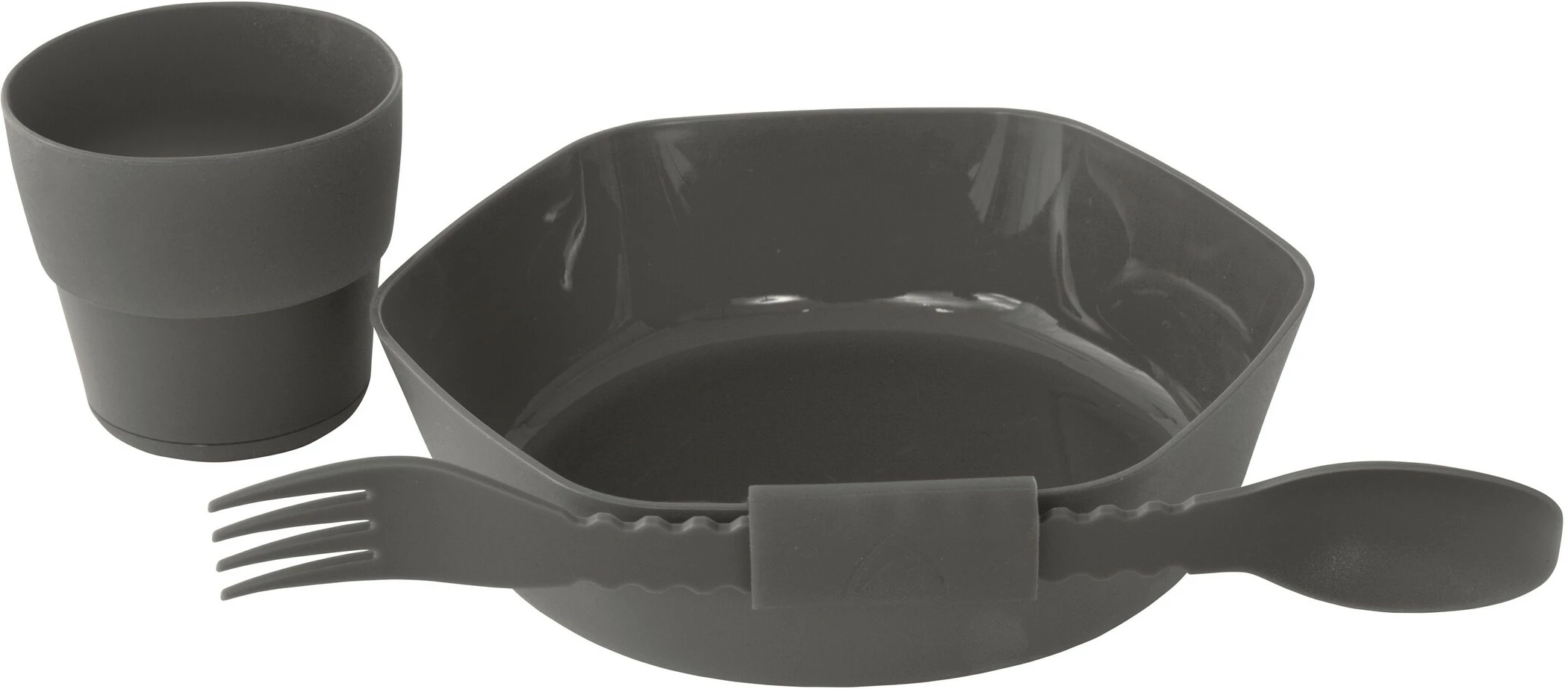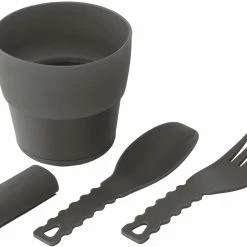 Met de Leaf Meal Kit van Robens met zijn 6-in-1 oplossing zijn maaltijden onderweg geen probleem meer. Het multifunctionele deksel fungeert als zeef en snijplank. Lepel en vork kunnen met elkaar worden verbonden en in drie verschillende lengtes worden gebruikt. Dankzij de aantrekkelijke zeshoekige vorm past de set moeiteloos in een rugzak. Twee sets kunnen op dezelfde plaatsbesparende manier bij elkaar worden opgeborgen.