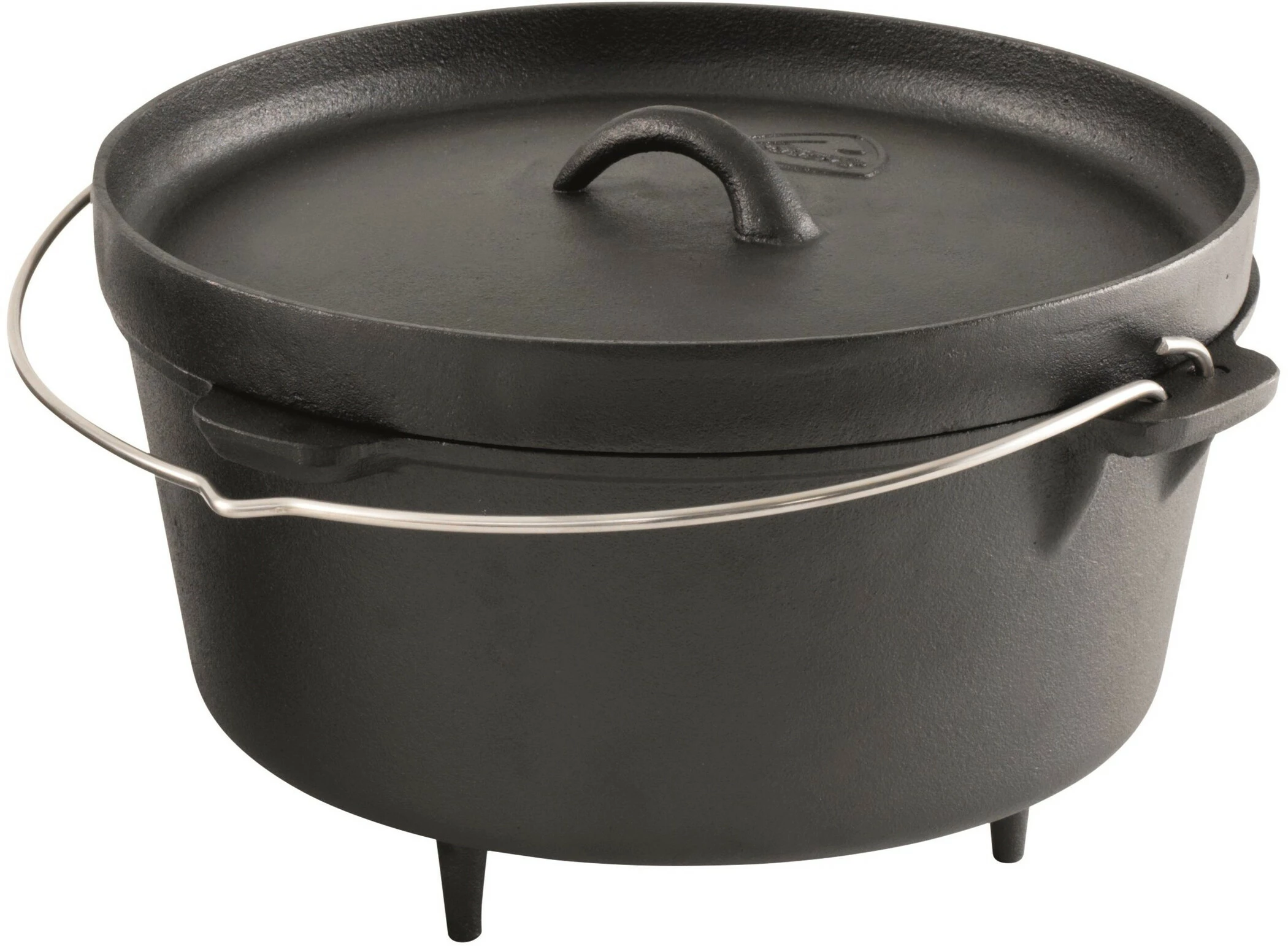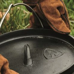 De Carson Dutch Oven van Robens met een volume van 8,2 liter kan zowel als pot en als oven gebruikt worden. Dankzij de opstaande rand op het deksel kunnen de kolen ook bovenop worden geplaatst, zodat de warmte van boven en van onderaf de binnenkant verwarmt. De Carson heeft 3 voet voor direct gebruik in het vuur. Het is gemaakt van duurzaam gietijzer voor een optimale warmteoverdracht en zelfs voor het koken en heeft een speciale handgreep met een bevestigingspunt voor de ophanging. De pot is voorbehandeld en direct klaar voor gebruik. Het heeft ook een handvat voor gebruik met statief.