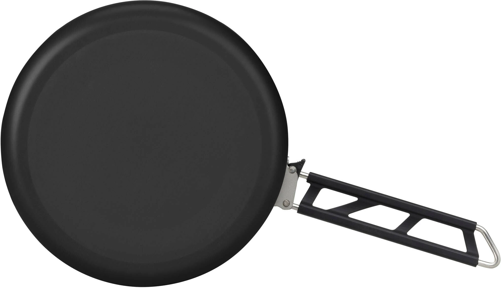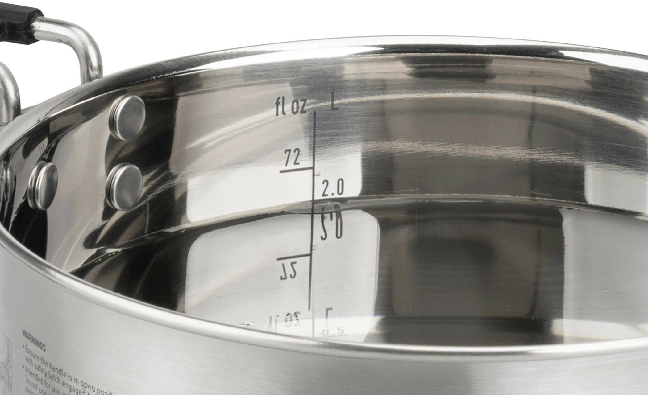 - Poedercoating op de bodem van de pan vermindert hete plekken en geeft stabiliteit op campingfornuizen