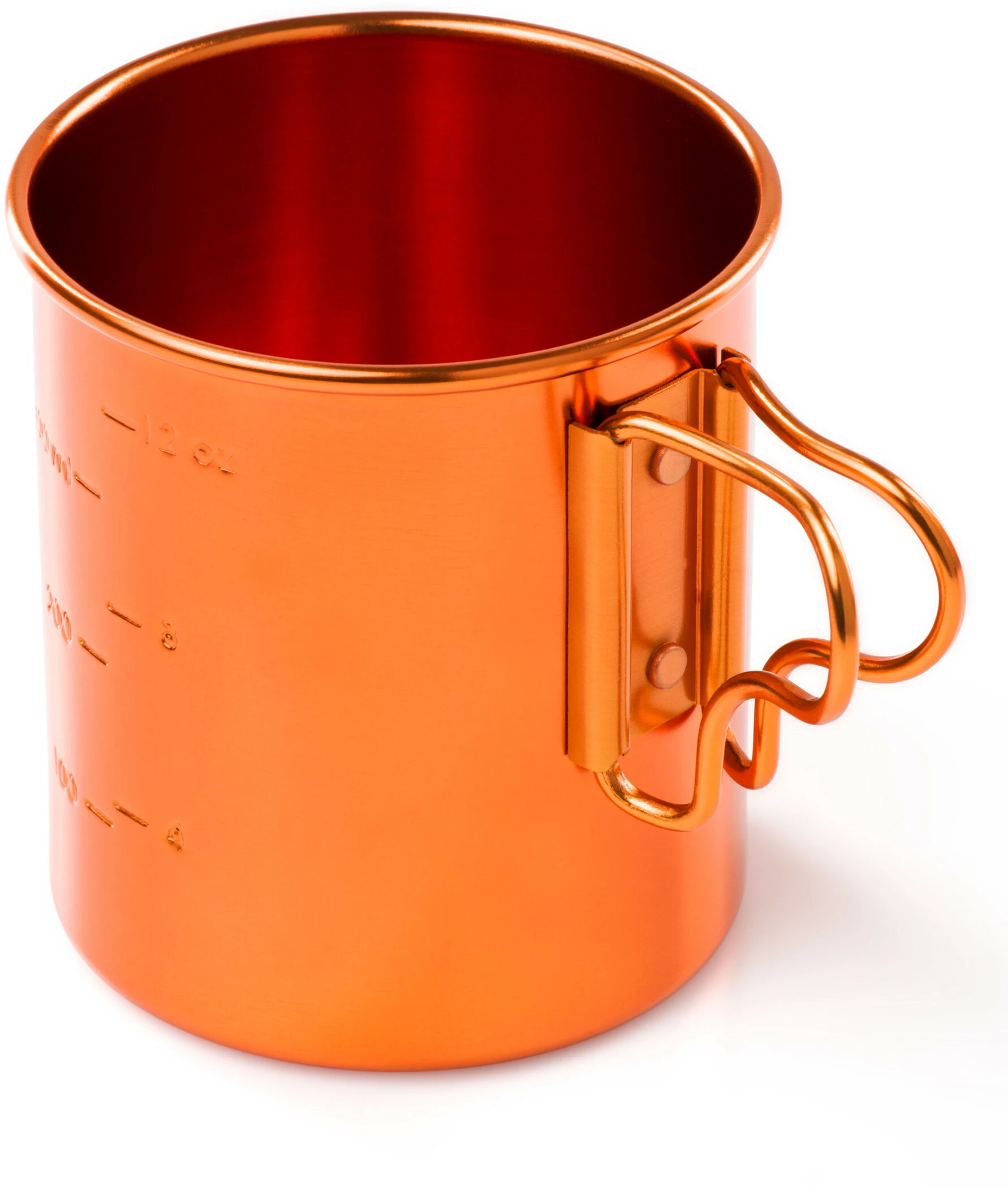 Deze ultralichte en kleurrijke kampeer- en wandelbeker van hoogwaardig aluminium heeft vouwbare handgrepen en weegschalen in reliΓ«f.