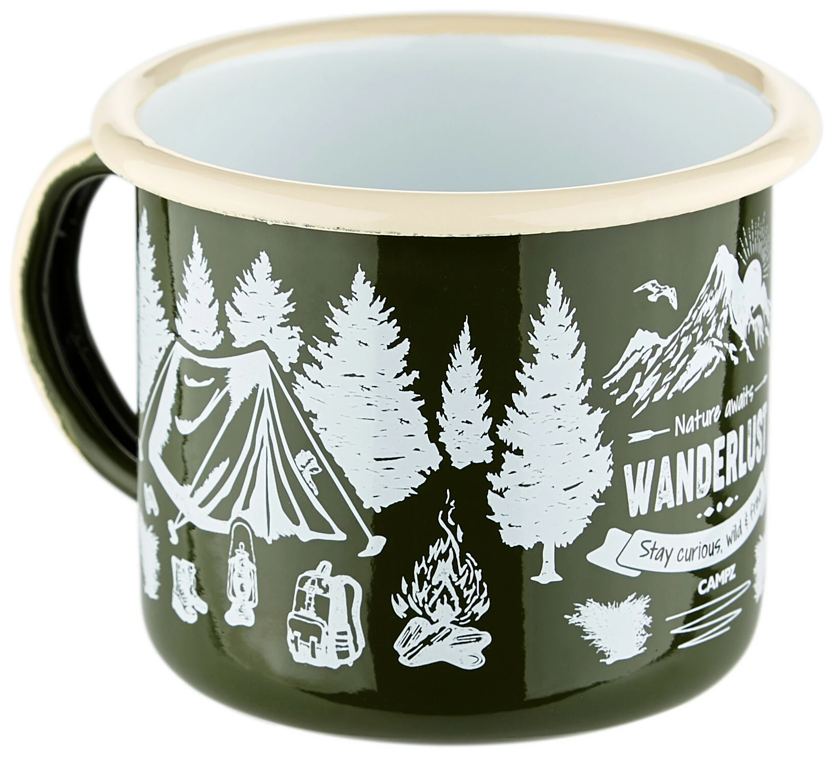 CAMPZ Wanderlust Enamel Mug, groen/wit