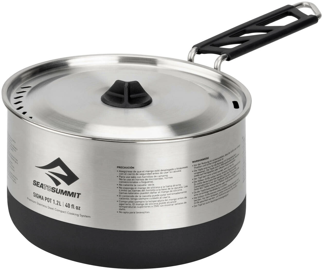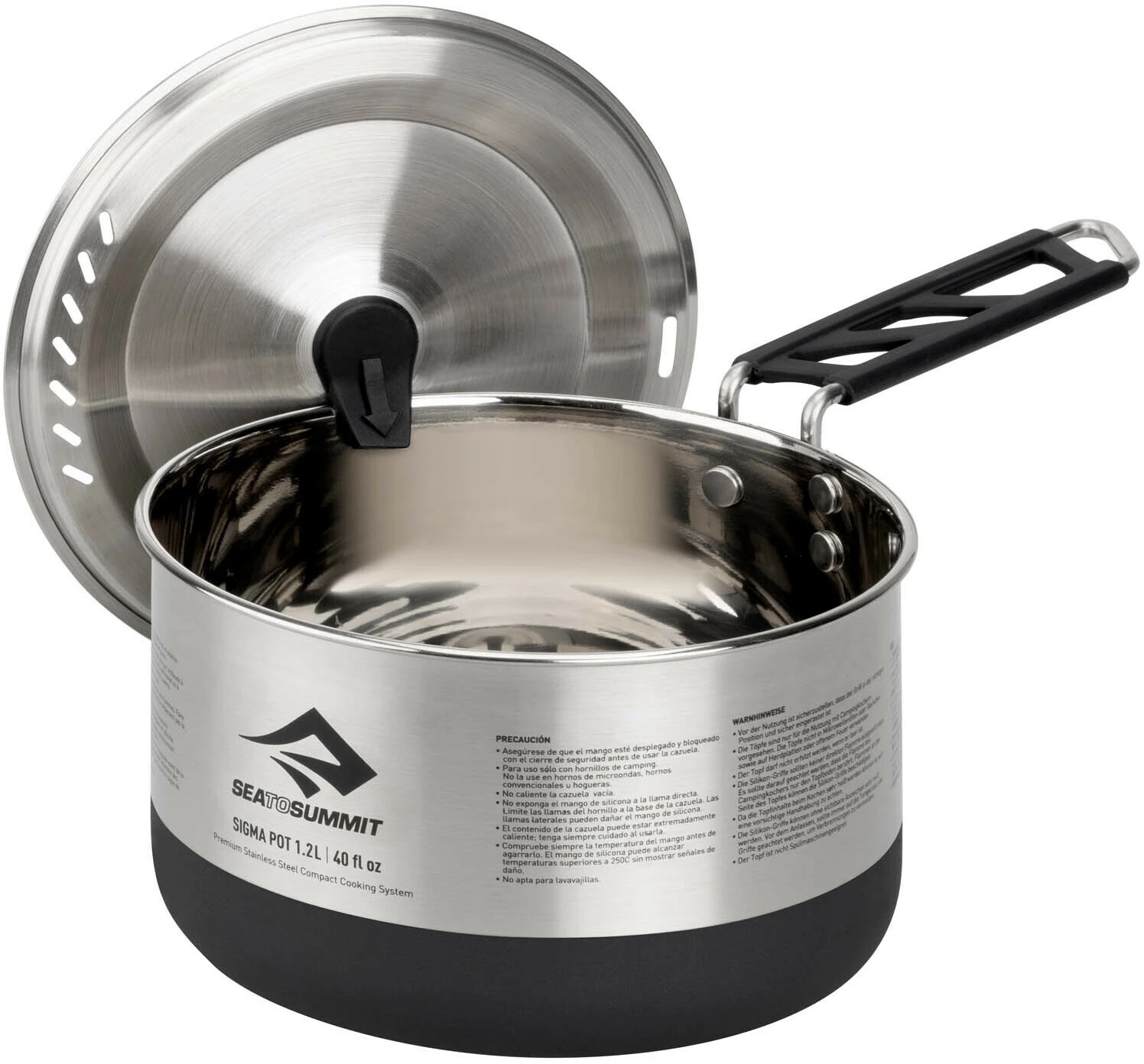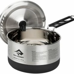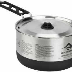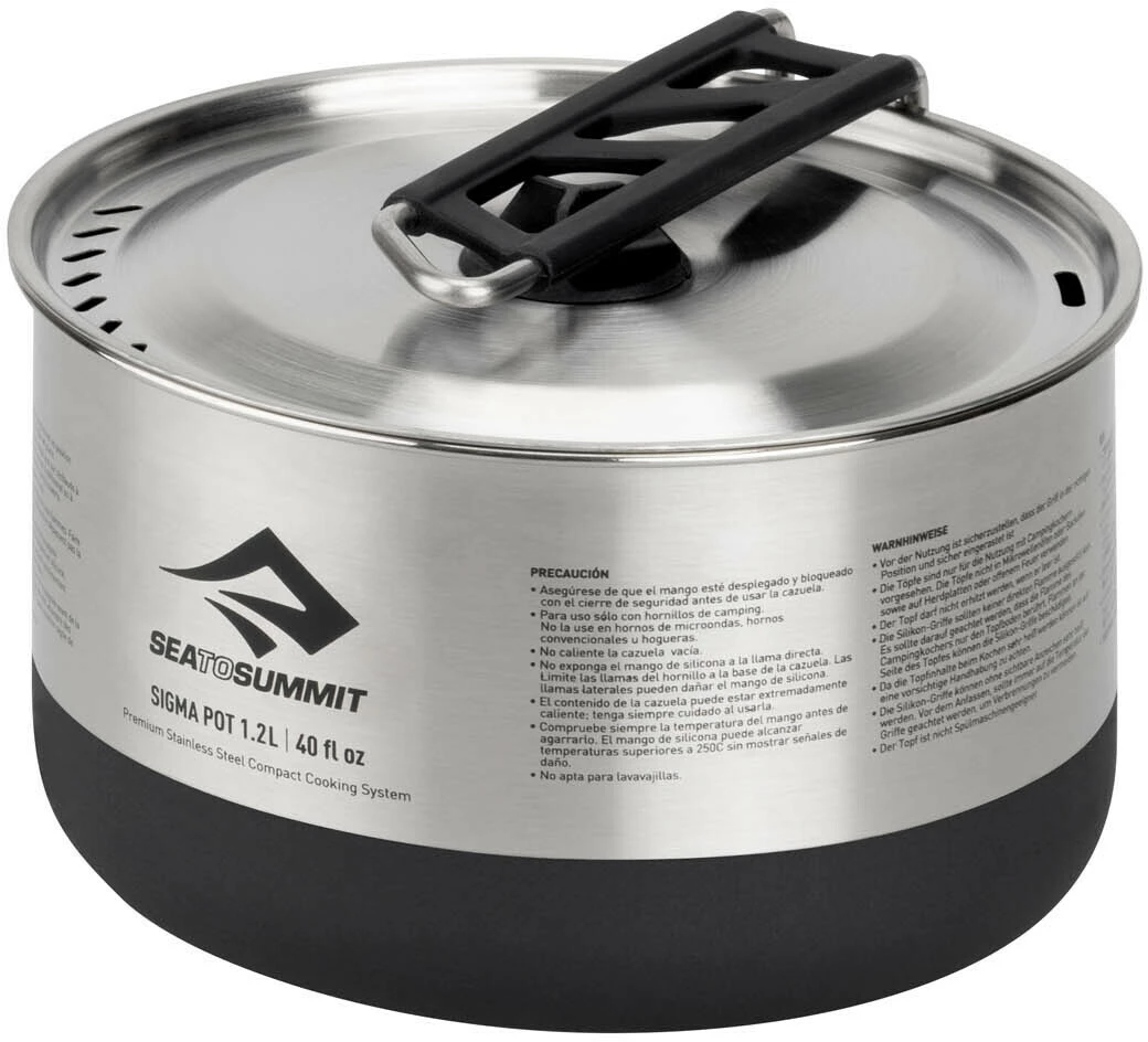 De minimalistische Sigma Set 1.1 van Sea to Summit biedt een compact kooksysteem voor solo-avonturiers. De Sigma Pot-serie is gemaakt van hoogwaardig roestvrij staal. Het is stabiel, licht en biedt een duurzaam, slijtvast en gemakkelijk te reinigen kookoppervlak voor de buitenkampeerkeuken. Het unieke Pivot-Lock handvat van de Sigma Pot, waarvoor patent is aangevraagd, draait horizontaal en klikt vast voor een veilige en stabiele grip. Het handvat kan ook worden ingeklapt en houdt het deksel vast aan de pan voor gemakkelijk transport. De poedercoating op de bodem van de pan vermindert hete plekken en voorkomt dat uw pan gaat schuiven op campingfornuizen, terwijl de geΓ―ntegreerde LID KEEP het zeefdeksel slim beschermt tegen vuil. De compacte Sigma Pots zijn compatibel met de Sigma Pannen van Sea to Summit, het DeltaLight kampeergerei en ook met de aluminium Alpha Pots en Alpha Pans, zodat ze bij elkaar passen.